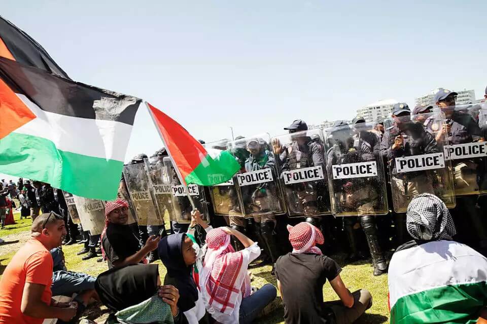 Volgens Vivienne Myburgh, nationaal directeur van ICEJ-Zuid-Afrika, had de pro-Palestijnse menigte zaterdag hun eigen grote protest gehouden in het stadscentrum en hun aanhangers opgeroepen om de christelijke gebedsbijeenkomst voor Israël de volgende middag te komen verstoren. Videobeelden van de daaropvolgende razernij lieten zien dat de menigte het podium omdraaide en verschillende mensen agressief aanviel voordat ze de politie aanvielen terwijl die probeerde weerbarstige demonstranten te arresteren. De politie verspreidde de menigte uiteindelijk door waterkanonnen af te vuren en verdovingsgeweren te gebruiken tegen de pro-Palestijnse demonstranten.