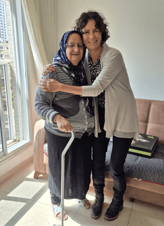 “Zijn er echt mensen zoals jij die om mij geven en tijdens deze oorlog helemaal uit Jeruzalem komen rijden?” zei ze verbaasd. “Dat vinden we helemaal niet vanzelfsprekend. Dank je wel!”