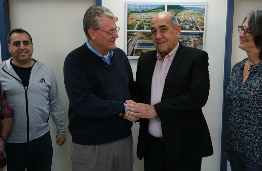 Veel van het stadspersoneel was terug in hun kantoor toen we werden meegenomen naar de oude burgemeester Gabriel Na’aman. Hij was er snel bij om de ICEJ te bedanken voor het helpen van zijn stad in de afgelopen maanden door negen draagbare bovengrondse schuilkelders te doneren en 73 bestaande ondergrondse schuilkelders te renoveren.