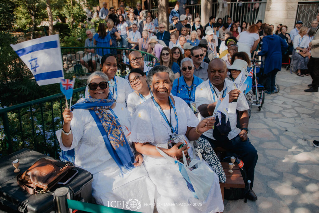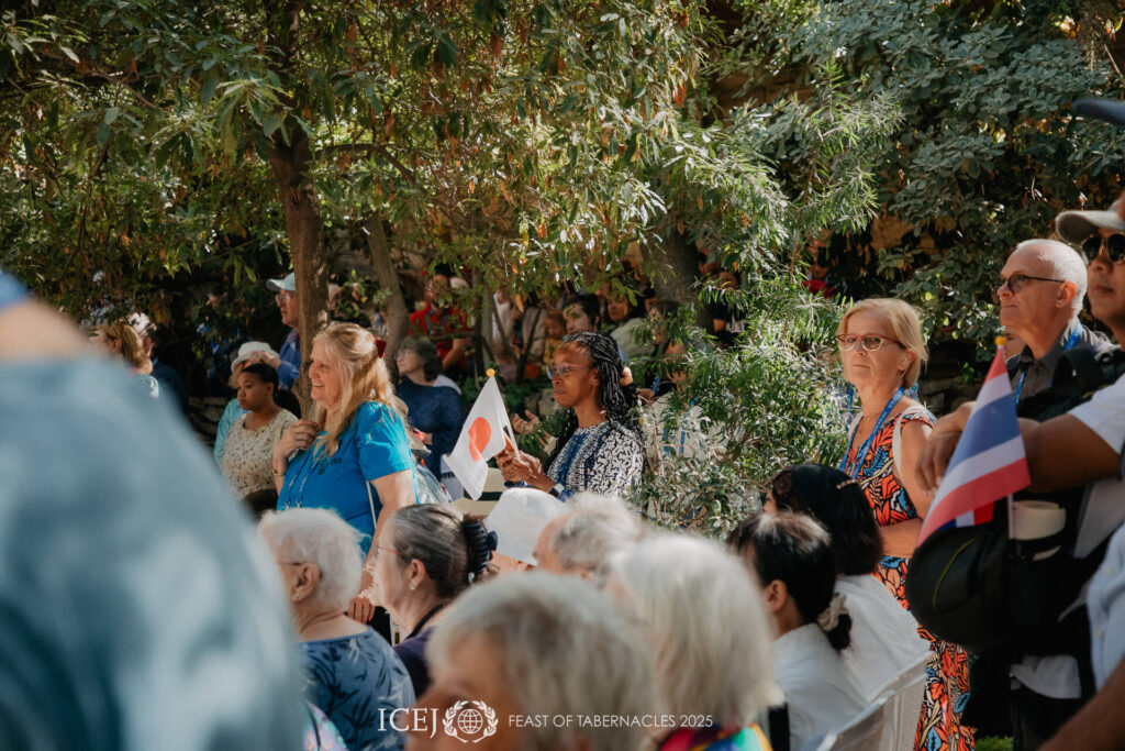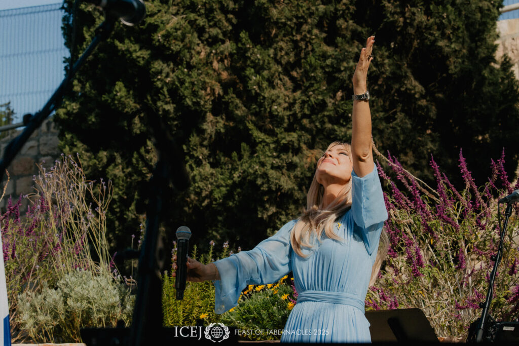 Om 10 uur ‘s ochtends klonk de aanbiddingsmuziek in de grote blauwe lucht boven de rustige tuin buiten de stadsmuren van Jeruzalem, en mensen uit meer dan 70 landen hieven hun handen, harten en stemmen om te erkennen dat “IK WEET DAT MIJN VERLOSSER LEEFT”. We werden eraan herinnerd dat de overwinning nabij is en werden bemoedigd door de hoop dat de oorlog spoedig ten einde zal komen.