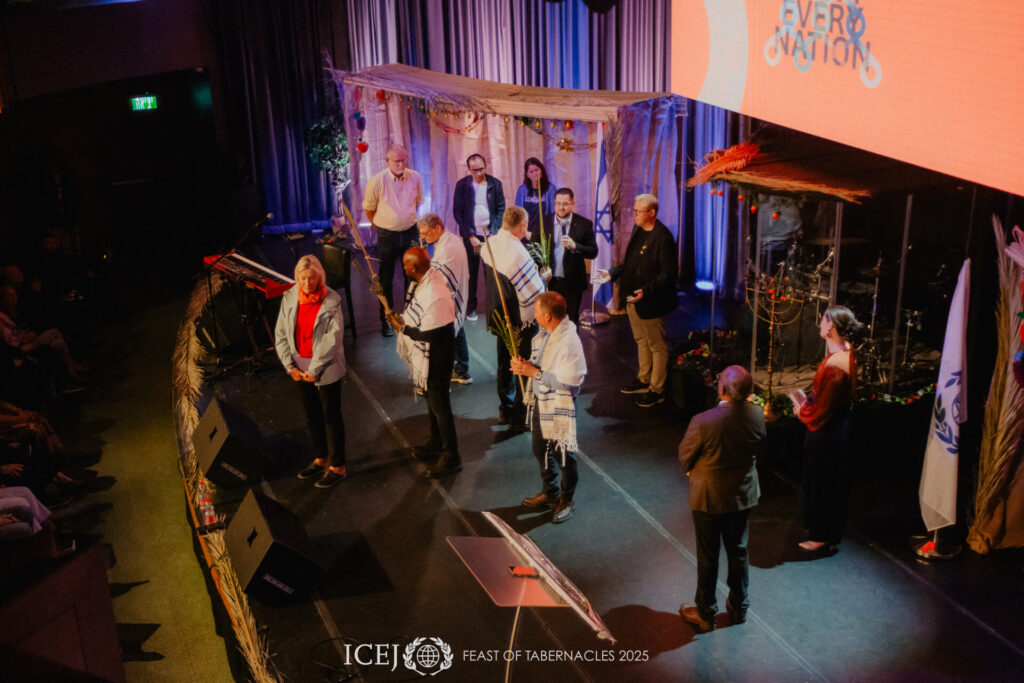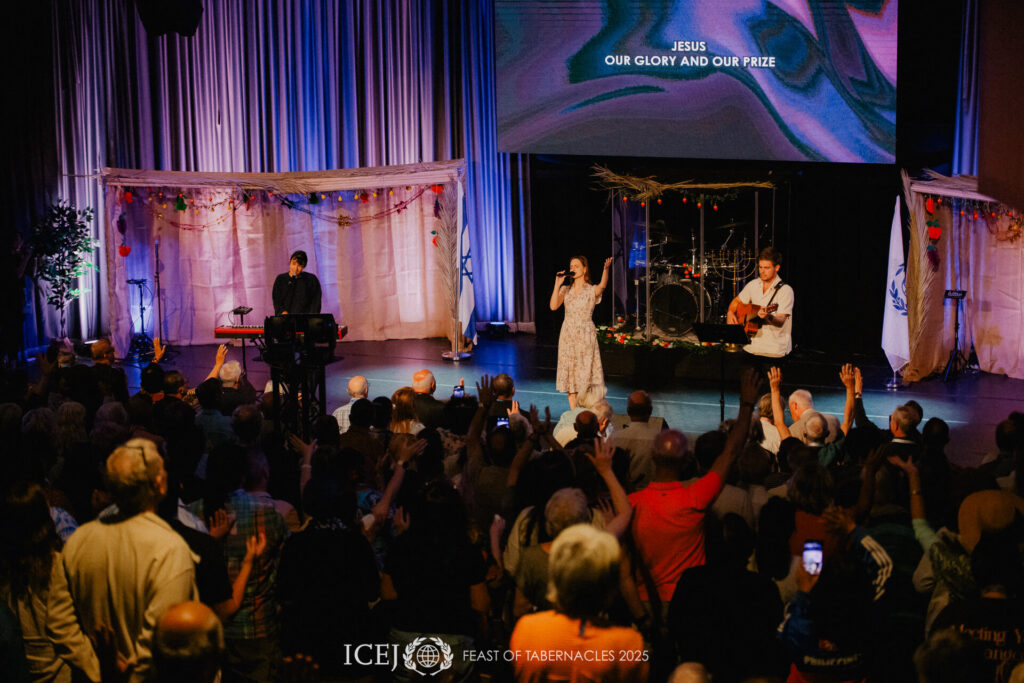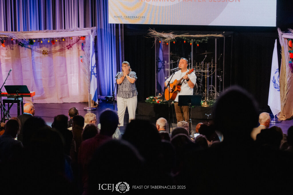 Toen de avond ten einde liep, betrad het leiderschap van ICEJ het podium en hief hun handen op om de verzamelde naties te zegenen. Samen verkondigden ze hoop, herstel en eenheid in Christus. De avond eindigde met krachtige aanbidding en de aankondiging: “Volgend jaar zal de Leeuw vanuit Sion brullen!”