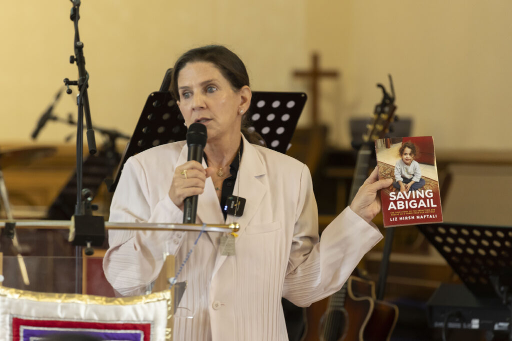 Onze hoofdspreker bij beide evenementen was Liz Hirsh Naftali, een joodse dame die een belangrijke internationale pleitbezorger is geworden voor de Israëlische gijzelaars die nog steeds in Gaza worden vastgehouden. Haar achternichtje, Abigail, was het jonge kind van drie jaar dat door Hamas werd ontvoerd nadat zij haar vader en moeder hadden vermoord. Het verhaal bracht mensen letterlijk tot tranen.