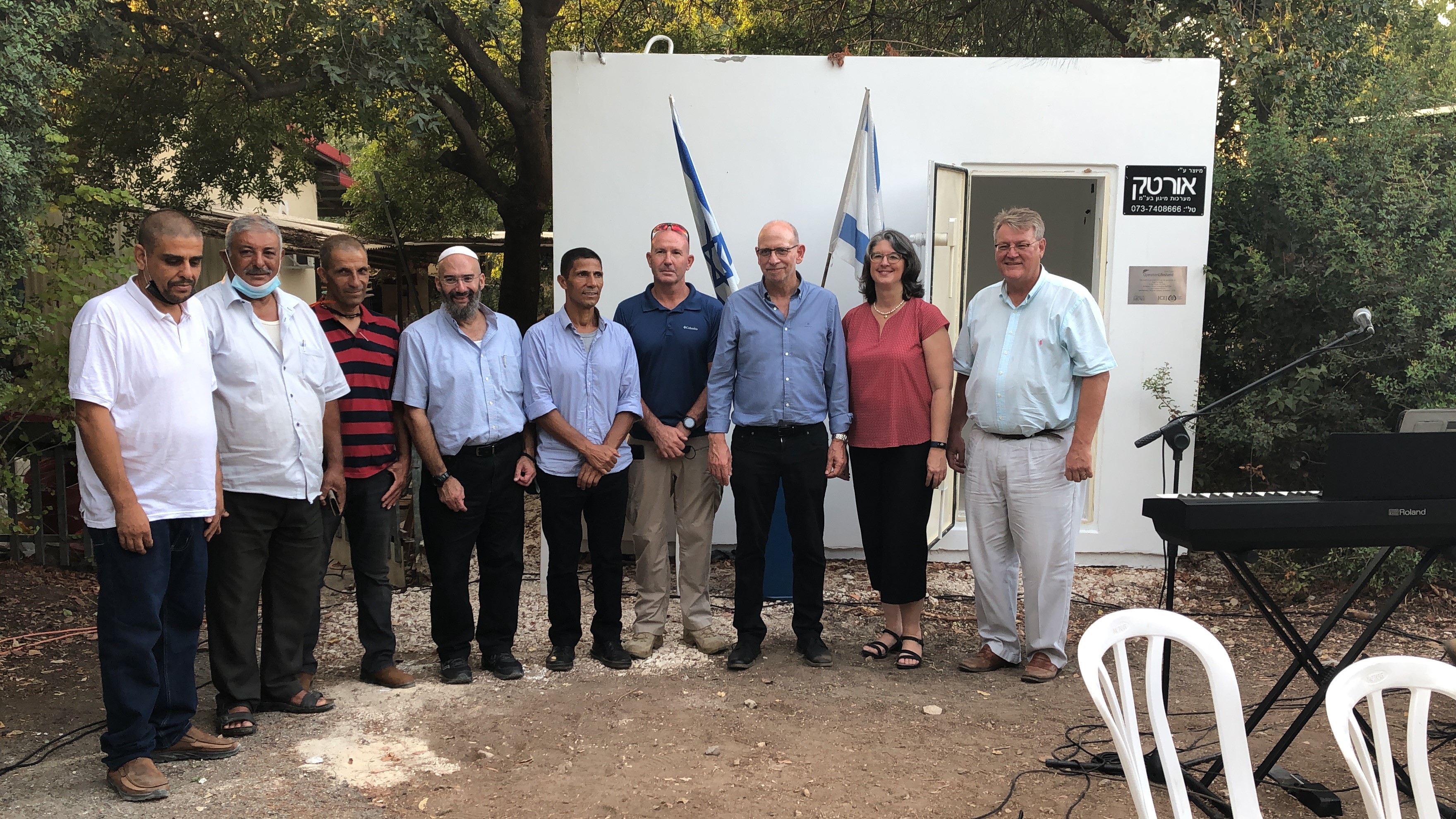 Vorige maand bezocht een ICEJ-team Kibbutz Usha, in de regio Zevulun, om een paar schuilkelders in te wijden die aan de gemeenschap waren geschonken om kinderen op een kleuterschool en een kinderdagverblijf te beschermen. Ze maakten deel uit van de recente beslissing van de christelijke ambassade om in totaal acht opvangcentra in de regio Zevulun te plaatsen, met mogelijk nog meer. Het hoofd van de regionale raad, Amos Netzer, merkte op dat de Zevulun-regio zowel Joodse als Arabische steden bevat en zijn zorg is dat iedereen de bescherming krijgt die ze nodig hebben tegen Hezbollah-raketten. En inderdaad, lokale vertegenwoordigers van Joden, Moslims, Christenen en Druzen waren aanwezig bij de inwijdingsceremonie om de ICEJ te bedanken voor de hulp aan hun gemeenschappen (zie foto- en videoverslag).