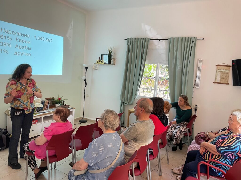 Tegelijkertijd geeft een professionele gids hen lezingen met videoclips en foto’s over het Joodse thuisland en zijn erfgoed, zodat degenen die niet meer kunnen reizen toch iets over Israël kunnen leren.