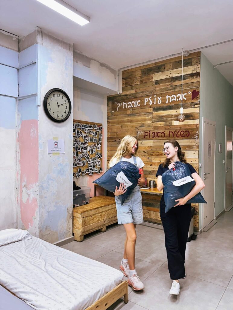 Publicatiedatum - 01/12/2025Vanaf het moment dat het ICEJ-team de drempel van het Red Carpet Center in Tel Aviv overschreed totdat ze het afval van die dag de deur uitveegden, waren ze onvermoeibaar bezig met het bereiden van eten, het opvouwen van kleding, het lakken van nagels, het afwassen, het zetten van thee en het uitdelen van persoonlijke hygiënekits.