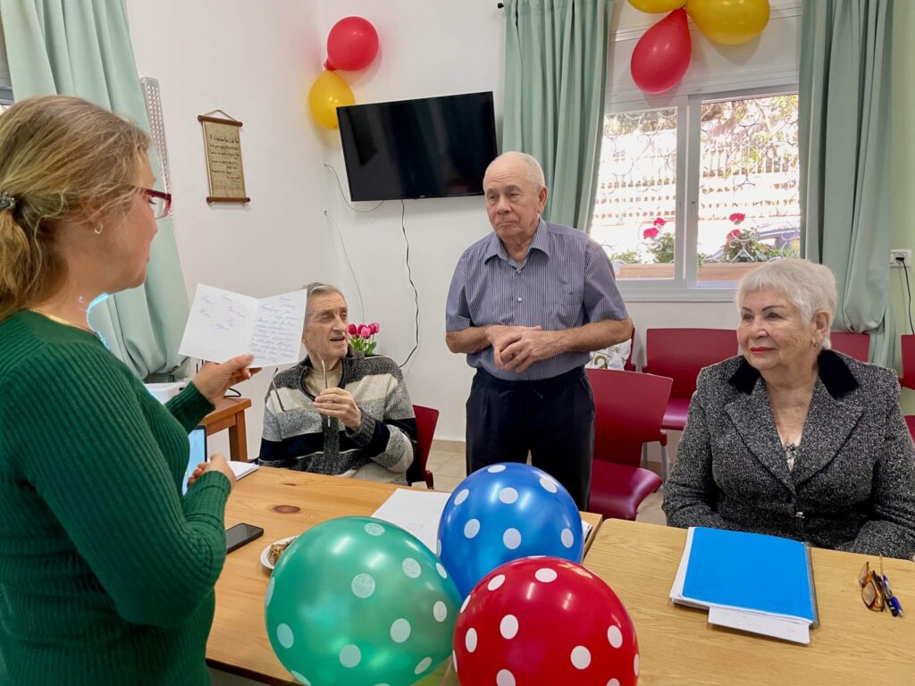 Door de lessen zijn onze Haifa Home-bewoners veel meer met elkaar verbonden geraakt en zijn er nieuwe vriendschappen ontstaan. Ook worden verjaardagen samen gevierd met gebak en drankjes aan het einde van de lessen. De lerares, Maria, geeft thuis ook privélessen Hebreeuws aan twee aan huis gebonden inwoners uit Oekraïne.