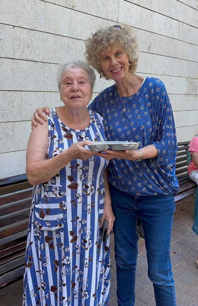 Het team van de Christian Embassy in het Haifa Home reageerde vanaf de eerste dag van het conflict snel. De keuken en eetzaal waren elke ochtend en middag in volle bedrijf om warme maaltijden te bereiden en te verpakken voor overlevenden van de Holocaust, niet alleen voor onze bewoners, maar ook voor anderen in de omgeving van Haifa. Elke dag werden bijna 400 warme maaltijden gekookt, verpakt en bezorgd aan overlevenden van de Holocaust, van wie sommigen te bang of te zwak waren om hun huis te verlaten. Elke maaltijd, persoonlijk bezorgd door zorgzame vrijwilligers, was een boodschap van liefde en zorg; een herinnering voor elke overlevende dat ze niet vergeten zijn, dat iemand hen ziet.