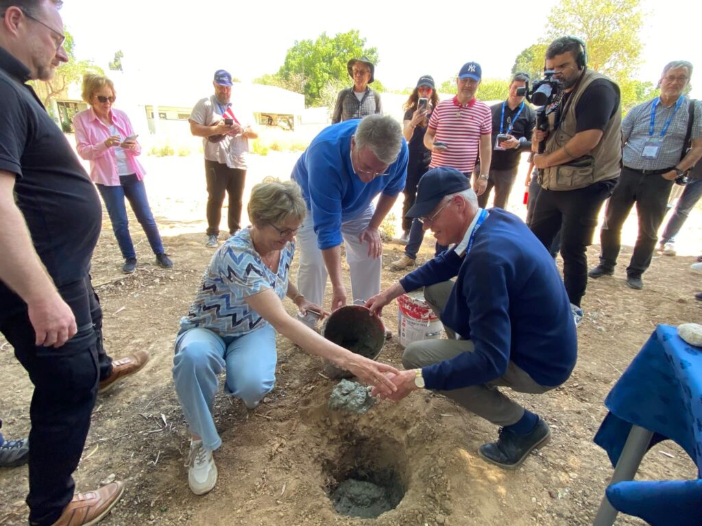 Een speciale delegatie van meer dan 50 wereldwijde christelijke leiders van de International Christian Embassy Jerusalem heeft dinsdag een bezoek gebracht aan de grensgemeenschappen van Gaza en een ceremonie gehouden met vertegenwoordigers van Kibboets Be’eri om hun jeugdactiviteitencentrum, dat tijdens het bloedbad van 7 oktober werd verwoest, volledig te herbouwen.