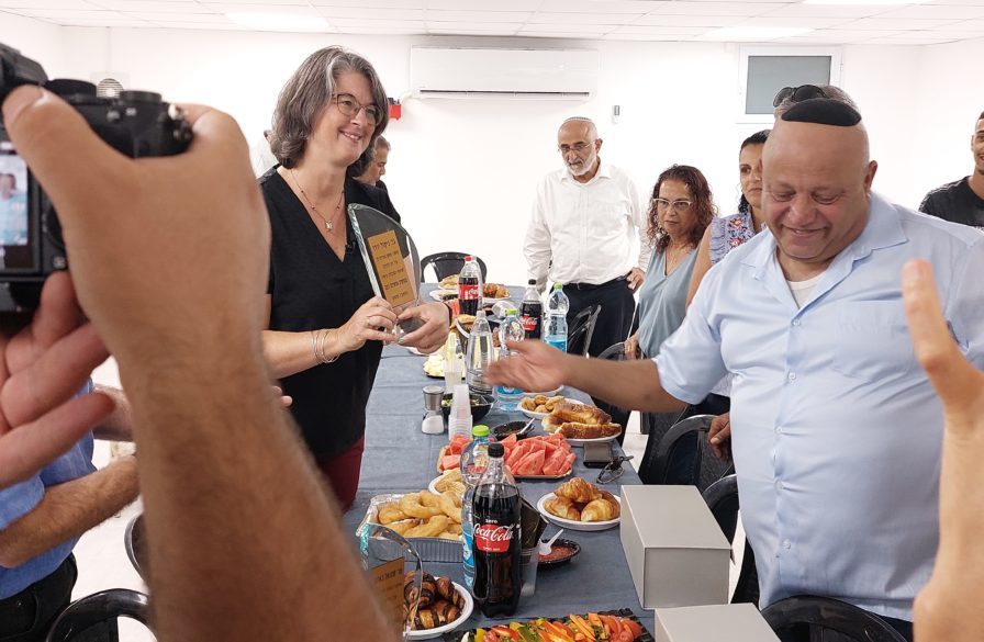 Nicole Yoder, ICEJ Vice President voor Aid & Aliyah, sloot zich aan bij andere lokale gemeenschapsleiders om een muurplaat bij de ingang van de schuilkelder te monteren. Ze vertelde de bijeenkomst dat “dit geschenk afkomstig is van christenen over de hele wereld die een brug van vriendschap willen bouwen en graag hun deel doen om jullie leven beter te maken. We zijn verheugd om deel uit te maken van dit prachtige project en we hopen dat het je gemoedsrust geeft en levens redt. Moge je veel gelukkige evenementen hebben op deze plek”