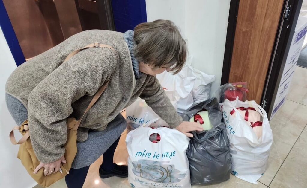 Het Homecare-team had 140 prachtige geschenkpakketten samengesteld om uit te delen aan veel ouderen in Israël, waaronder overlevenden van de Holocaust en andere immigranten uit de voormalige Sovjetrepublieken, evenals enkele eenoudergezinnen die te maken hebben met ziekte of hulp nodig hebben. Normaal gesproken worden alle cadeaupakketten vóór Pesach persoonlijk door ons team bezorgd bij huizen in heel Israël, wat een bijzondere gelegenheid biedt om onder het genot van een kopje thee te praten over hun vreugde, verdriet, behoeften en angsten.