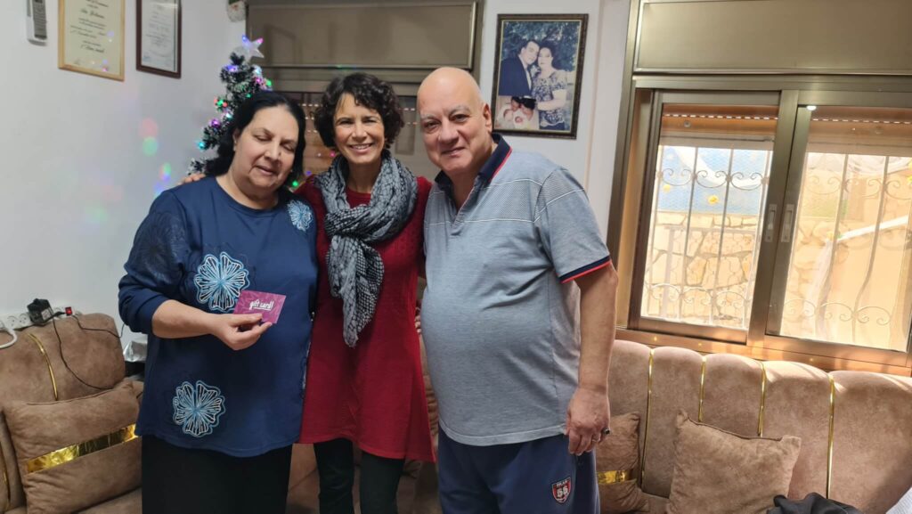 Een derde bezoek was aan Mary en Kamal, afkomstig uit Bethlehem en Egypte, maar inmiddels al jarenlang woonachtig in Nazareth. Dit was het derde bezoek van ICEJ en de relatie was inmiddels zeer persoonlijk geworden. Ondanks aanhoudende gezondheids- en financiële problemen staan zij bekend om hun vrijgevigheid en gastvrijheid. Deze kerst is bijzonder vreugdevol omdat zij een nieuwe kleinzoon mogen verwelkomen. Dankzij de ontvangen steun kan hun familie samenkomen, een feestelijke maaltijd bereiden en samen vieren. Ze vroegen om gebeden en bedankten ICEJ voor hun steun.