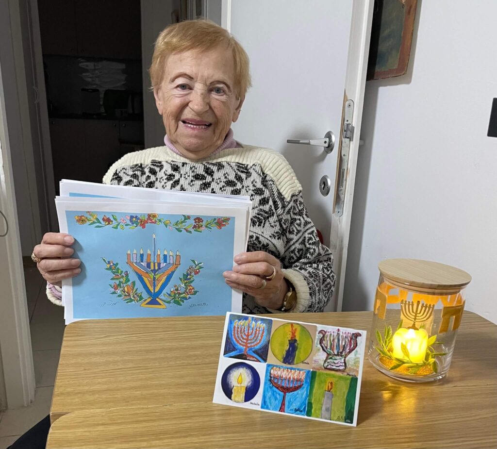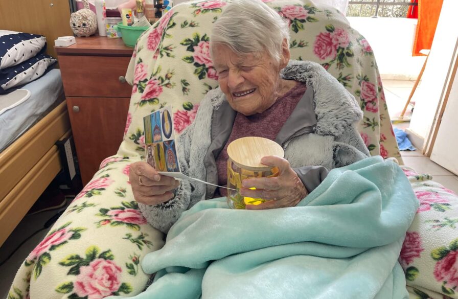 In het ICEJ Haifa Home was dezelfde geest voelbaar. Het lokale team had kleine chanoeka-cadeautjes voorbereid voor de bewoners en het Israëlische personeel, elk vergezeld van een kaartje met kunstwerken gemaakt door de bewoners zelf en een boodschap over licht dat duisternis overwint. Verschillende bewoners waren diep geraakt door de zorgzaamheid achter dit gebaar. Het team dacht ook aan de 24/7 zorgverleners – velen met een christelijke achtergrond en ver van hun familie – met een klein kerstcadeautje, als aanmoediging in een tijd waarin eenvoudige vriendelijkheid een diepe betekenis heeft.